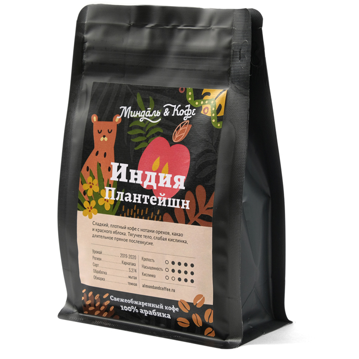 У каждой страны есть своя визитная карточка, в Индии это конечно же специи и пряности, аромат которых есть абсолютно во всех продуктах, привезенных с полуострова Индостан. И этот кофе не исключение! Помимо классических нот темного шоколада, орехов и какао, в нем присутствуют нотки восточных специй, гвоздики, ванили и кардамона.